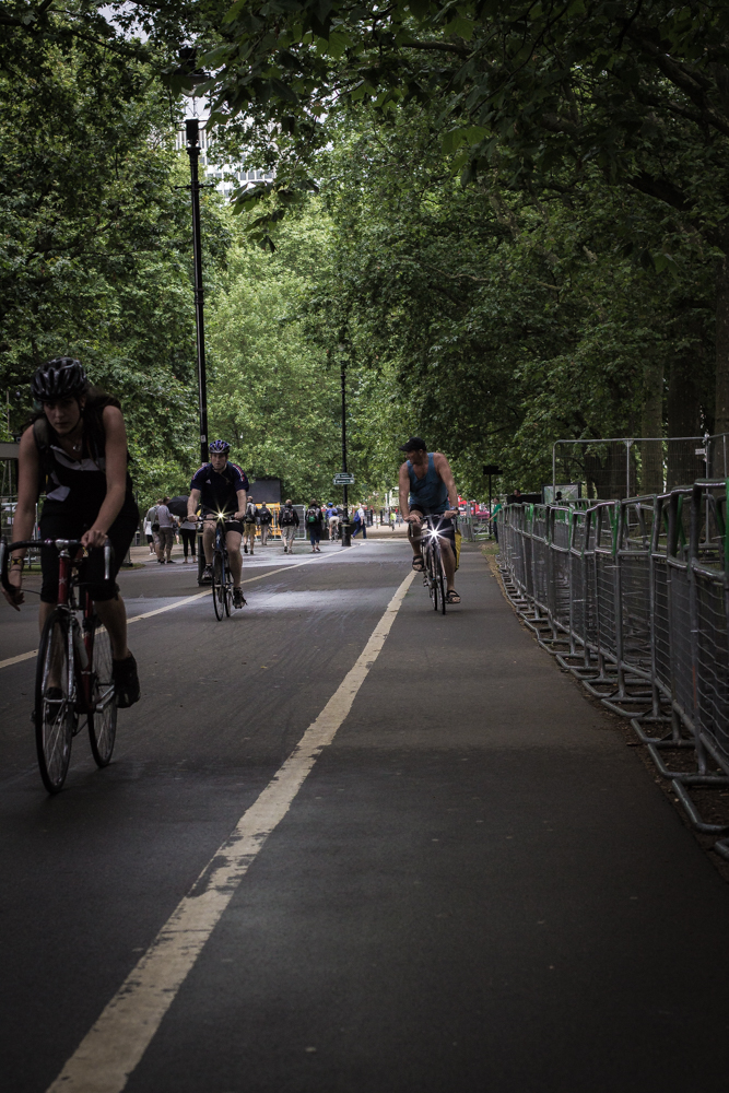 There are runners almost running into everyone, the ‘lycra-lout’ on light weight road bikes taking off at speed and riding head-on into everyone; I kind of get the sense that some of these people are looking for conflict with the more sedate that are trying to avoid getting caught up in the unruliness.