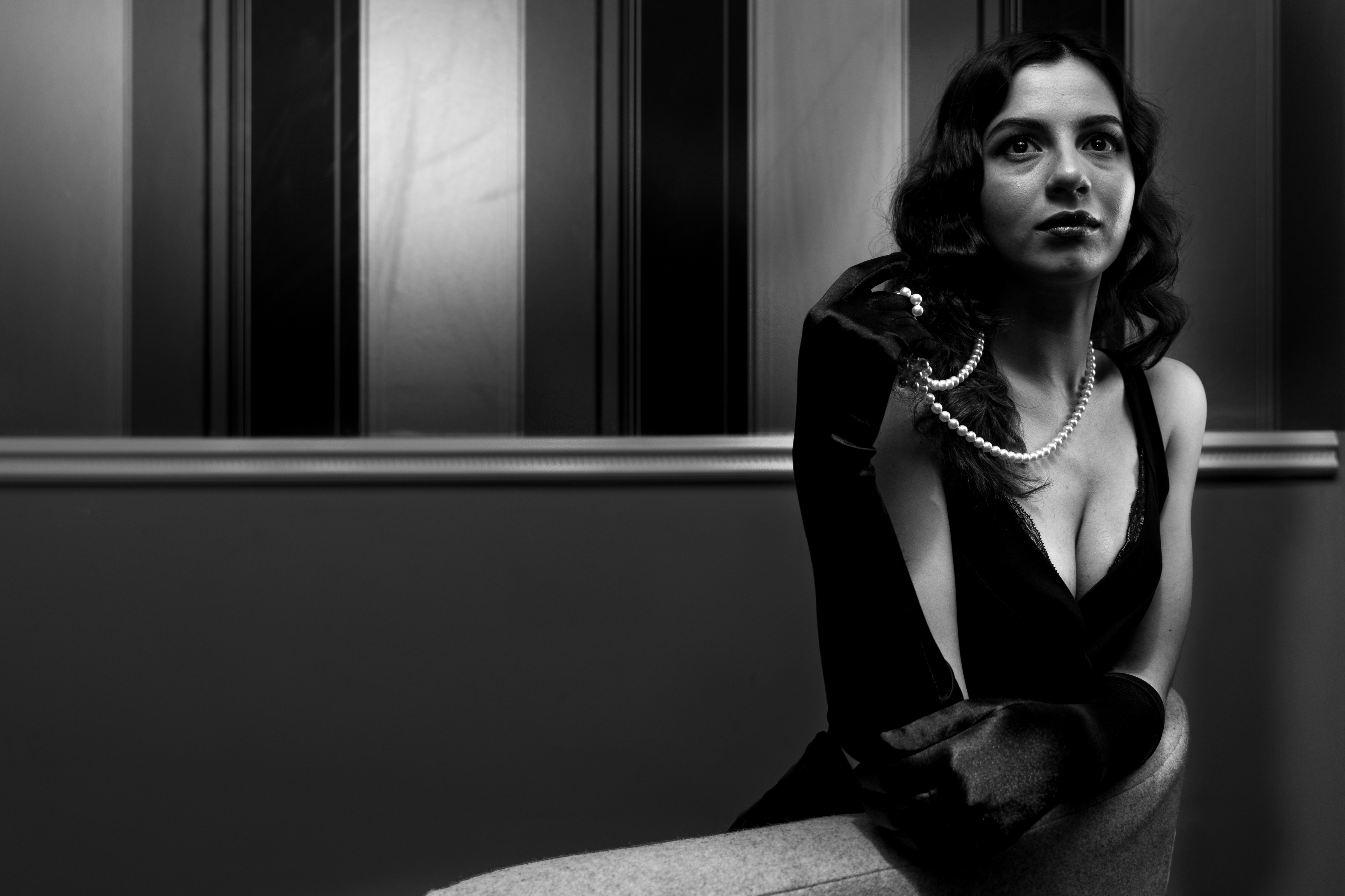 I like the light, the depth of field, the composition, the catch light in my models eyes; generally speaking I like the pose and her playing with the pearls but I kept seeing the hand and feeling negative about the image.